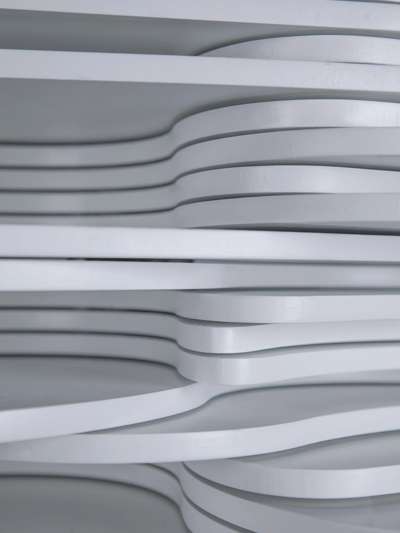 The company collected data from five categories; Computers in use, Images made, Positive sentiments, Travel time, and Late night food. The five Categories were then mapped out to a 5-axis graph and the data was input to form 52 destinct shapes representing the weeks in the year. The unique layers and spacers were CNC cut, stamped, sanded, sprayed, and assembled on a base to form the final 5ft tall sculpture.